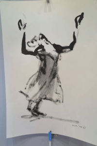 an ekphrastic poem for Why Me, an ink drawing on mulberry paper, by Una Kim last night at the Orangeburg county Fine Arts Center.