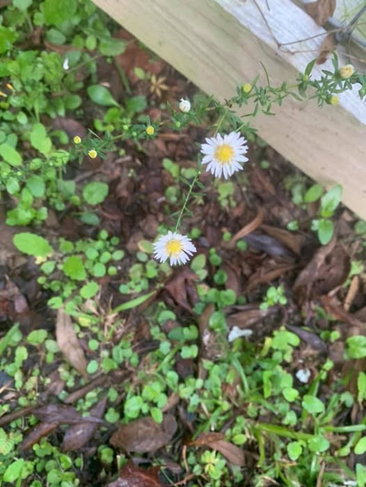 On the water side of the fence, a Fall flurry of flowers grows white and wild.